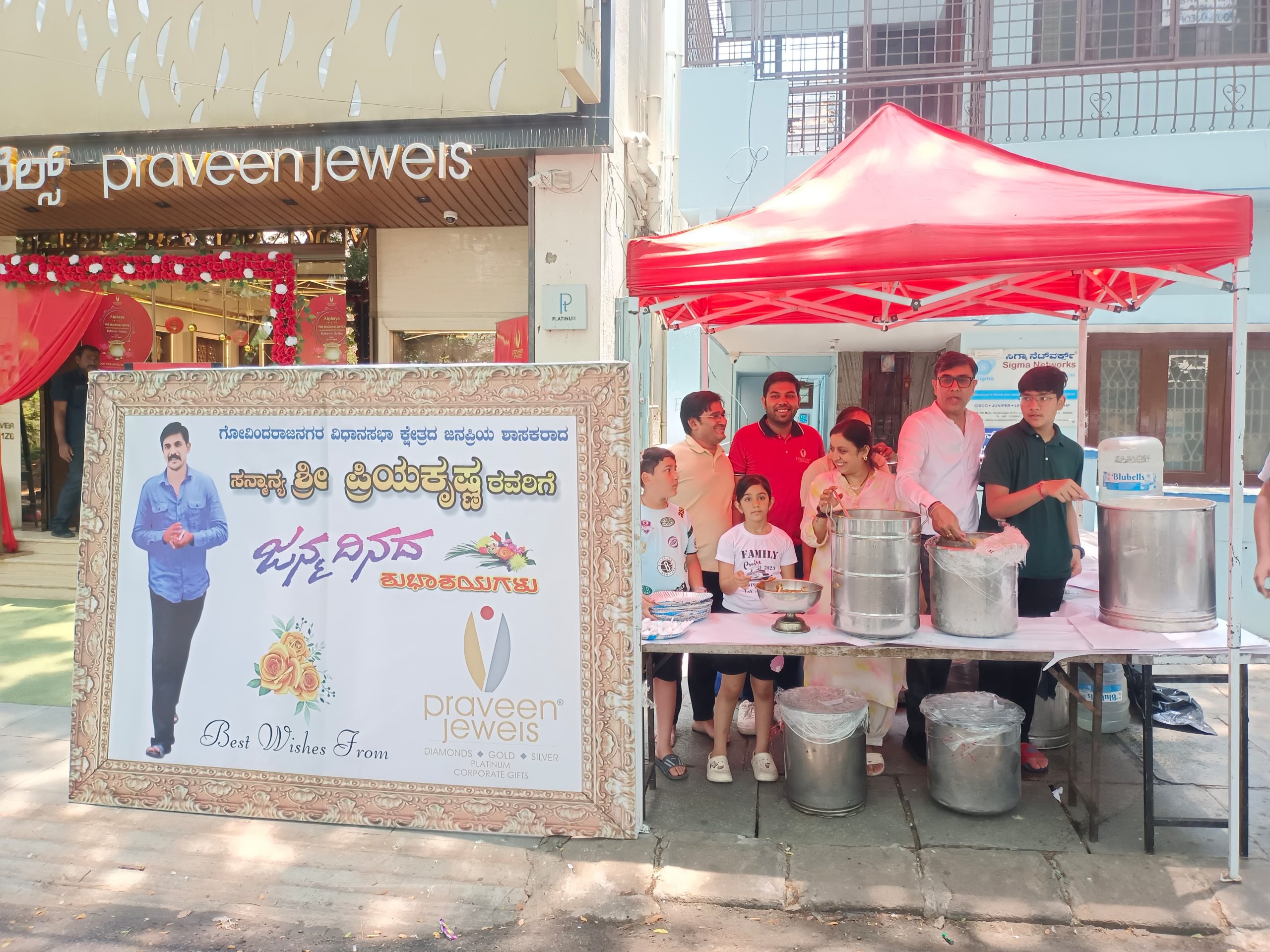 ಬೆಂಗಳೂರು: ಗೋವಿಂದರಾಜನಗರ ವಿಧಾನಸಭಾ ಕ್ಷೇತ್ರದ ಶಾಸಕ ಪ್ರಿಯಕೃಷ್ಣ ಅವರ ಹುಟ್ಟು ಹಬ್ಬದ ಪ್ರಯುಕ್ತ RPC ಲೇಔಟಿನ ಪ್ರವೀಣ್ ಜುವೆಲ್ಸ್ ವತಿಯಿಂದ ಅನ್ನದಾನ ಕಾರ್ಯಕ್ರಮ ನಡೆಸಲಾಯಿತು.