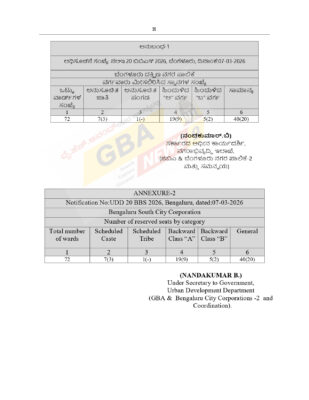Greater Bengaluru News9 : ಗ್ರೇಟರ್ ಬೆಂಗಳೂರು ಪ್ರಾಧಿಕಾರದ (GBA) ವ್ಯಾಪ್ತಿಯಲ್ಲಿ ಐದು ನಗರ ಪಾಲಿಕೆಗಳ 369 ವಾರ್ಡ್ಗಳ ಅಂತಿಮ ಮೀಸಲಾತಿ ಪಟ್ಟಿ ಪ್ರಕಟವಾಗಿದೆ. ಈ ಪಟ್ಟಿಯ ಪ್ರಕಾರ ಮಹಿಳೆಯರಿಗೆ ಶೇ.50ರಷ್ಟು ಸ್ಥಾನಗಳನ್ನು ಮೀಸಲಿಡಲಾಗಿದೆ ಎಂದು ರಾಜ್ಯ ಸರ್ಕಾರ ಘೋಷಿಸಿದೆ.
