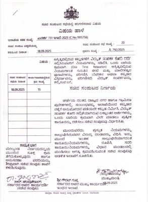 ಇಂದಿನ ಅಂದರೆ ದಿನಾಂಕ 25-09-2025 ರ ಸಂಪುಟ ಸಭೆಯಲ್ಲಿ ಚರ್ಚೆಯಾಗಿ ಈಗಾಗಲೇ ಎಸ್ಕೌಂಗಳಲ್ಲಿ ಶಾಶ್ವತ ವಿದ್ಯುತ್ ಸಂಪರ್ಕಕ್ಕೆ ಅರ್ಜಿ ನೊಂದಣಿ ಆಗಿ, ವಿದ್ಯುತ್ ಮಂಜೂರಾತಿ, ಕಾರ್ಯಾದೇಶ ಸೇರಿದಂತೆ ಬಾಕಿ ಇರುವ ಅರ್ಜಿ / ಕಟ್ಟಡಗಳಿಗೆ ರಾಜ್ಯ ಸರ್ಕಾರದ ವತಿಯಿಂದ ಒಂದು ಬಾರಿ ದಂಡ ದೊಂದಿಗೆ ವಿನಾಯಿತಿ ನೀಡುವ ನಿರ್ಣಯ ಕೈಗೊಳ್ಳುವುದಾಗಿ ಮಾಹಿತಿ ಬಂದಿರುತ್ತದೆ.